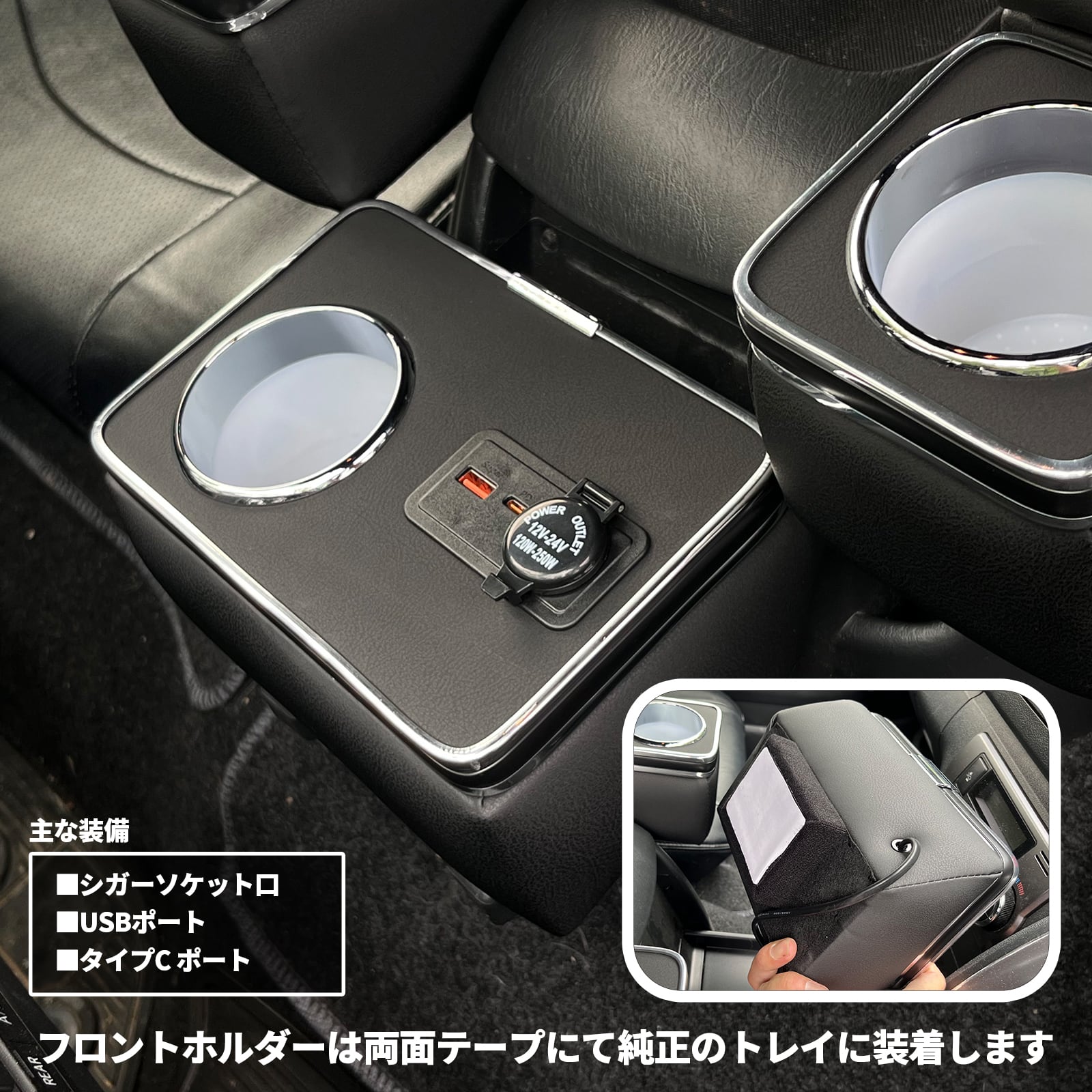 ・フロントカップホルダー(充電ポート付き、シガーソケット内蔵)